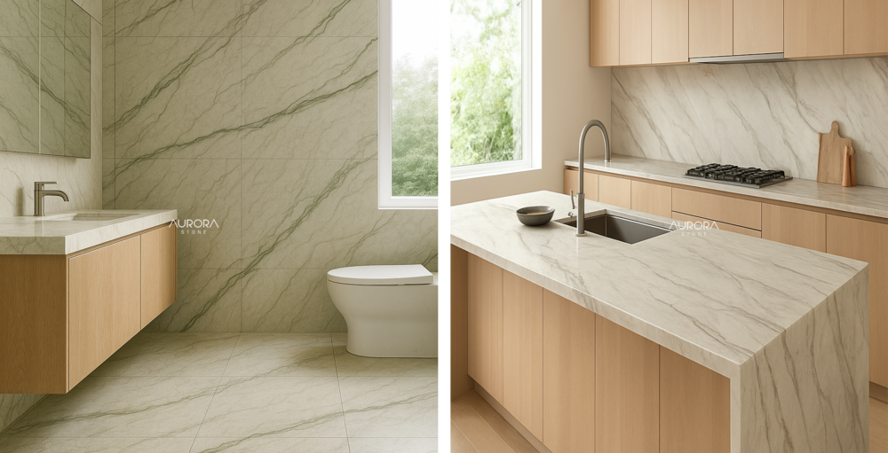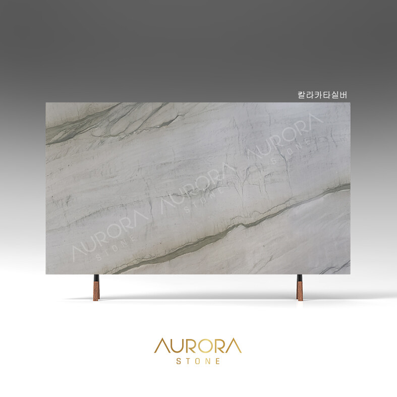특히 주방 아일랜드, 욕실 상판, 벽체, 바닥 등 다양한 공간에서 활용도가 높으며, 화이트 톤 인테리어와 조화롭게 어울려 전체 공간을 더욱 밝고 넓어 보이게 합니다. 또한 그레이나 블랙 계열의 자재와 매칭했을 때는 세련된 대비감을, 우드 계열과 조합했을 때는 따뜻하면서도 차분한 공간 연출이 가능해 활용 범위가 넓습니다. 고급스러움과 실용성을 동시에 갖춘 칼라카타 실버는 어떤 공간에서도 품격 있는 분위기를 완성해주는 프리미엄 대리석입니다.