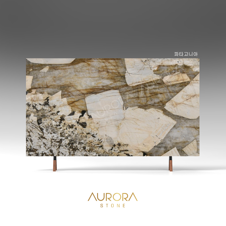 파타고니아 대리석은 석영과 크리스탈로 이루어진 오닉스 계열의 고급스럽고 유니크한 자재로, 마치 보석을 품은 듯한 고광택을 자랑합니다. 아르헨티나 파타고니아 빙산에서 영감을 받아 탄생한 이 아름다운 보석 대리석은 골드빛이 더해져 빛과 함께 최고의 인테리어 효과를 구현합니다. 화려하고 고급스러운 패턴 덕분에 아트월이나 내부 인테리어 석재로 널리 사랑받고 있습니다.