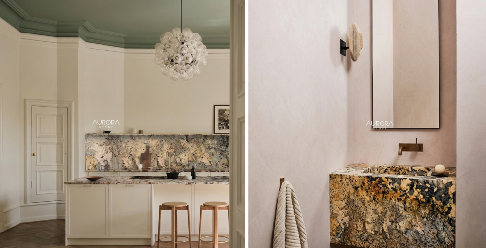 화려하면서도 고급스러운 패턴은 아트월이나 고급 내부 인테리어 자재로 자주 활용되며, 백라이트 조명을 더하면 천연 크리스탈이 지닌 은은하고 신비로운 빛을 그대로 느낄 수 있습니다. 이처럼 공간에 빛과 예술적인 감각을 동시에 더해주는 특별한 석재로, 럭셔리하고 감각적인 분위기를 원하는 인테리어에 최상의 선택이 됩니다.