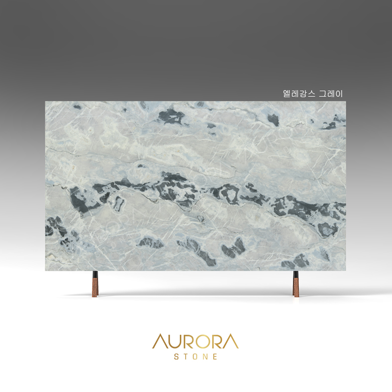 엘레강스 그레이는 은은한 그레이 바탕에 딥그린 톤이 자연스럽게 어우러진 고급 대리석입니다. 유려하게 흐르는 베인과 내추럴한 패턴이 조화를 이루어 한 장만으로도 강한 포인트를 만들어냅니다.