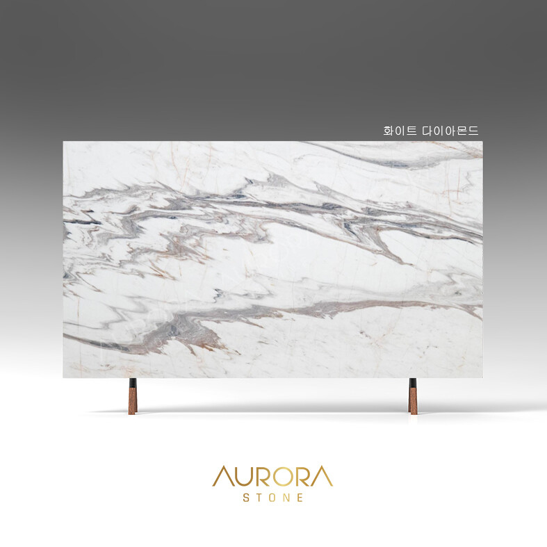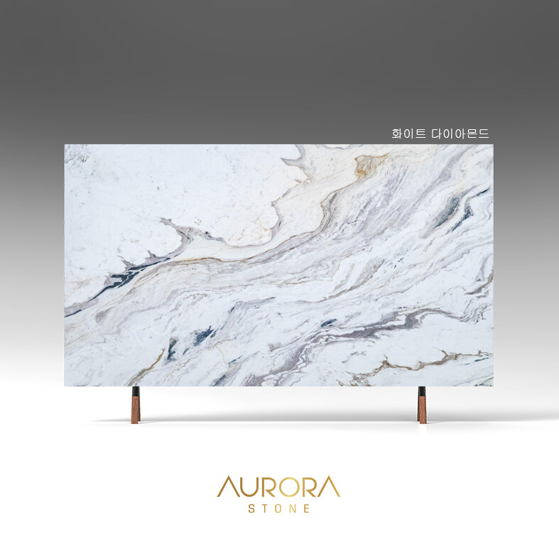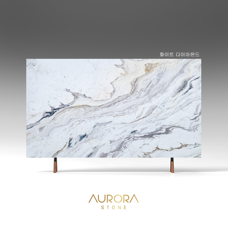 화이트 다이아몬드는 브라질산 프리미엄 대리석으로, 밝고 깨끗한 화이트 베이스가 특징인 고급 석재입니다.은은한 그레이와 실버 계열의 베인이 자연스럽게 퍼지며 섬세하고 고급스러운 패턴을 형성합니다.전체적으로 결이 부드럽고 과하지 않아 공간에 차분하면서도 세련된 분위기를 더해줍니다.빛을 받으면 맑은 광택이 살아나며 공간을 더욱 넓고 밝아 보이게 하는 효과가 있습니다.모던, 미니멀, 클래식 등 다양한 인테리어 스타일에 자연스럽게 어우러집니다.아트월, 바닥, 주방 상판 등 활용도가 높은 프리미엄 마감재입니다