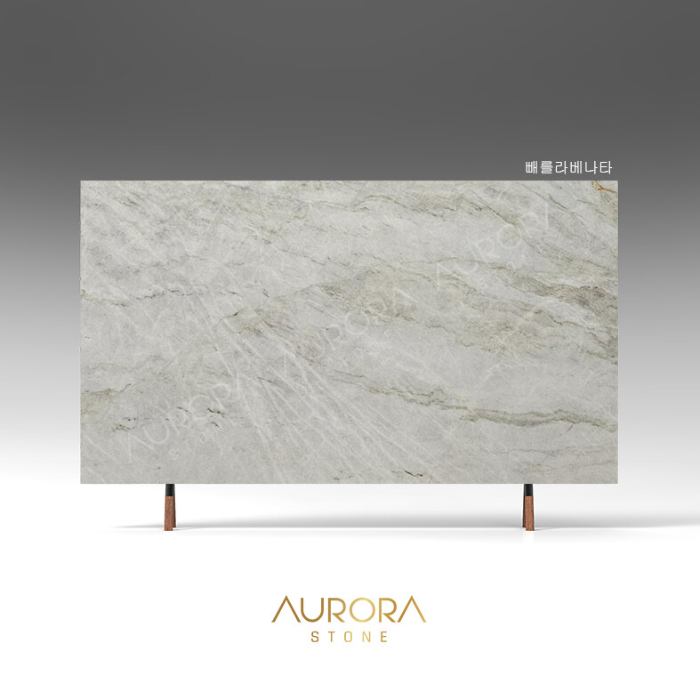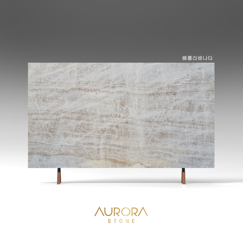 Perla Venata는 크리미한 아이보리 베이스에 브라운과 샌드톤이 은은하게 어우러진 천연 퀄사이트(Quartzite)로,