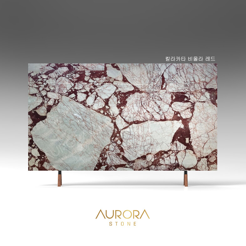 칼라카타 비올라 레드는 고급 천연 대리석으로, 고유의 자주색~ 레드 계열의 강렬한 베인과 화이트 또는 크리미한 배경색이 특징입니다. 독창적이고 예술적인 무늬 덕분에 주방 상판, 욕실, 벽면, 가구 상판 등 고급 인테리어 마감재로 널리 사용되며, 공간에 강한 시각적 임팩트를 부여합니다.
