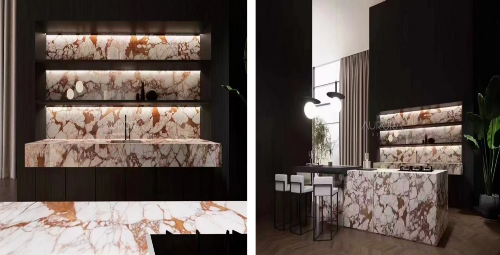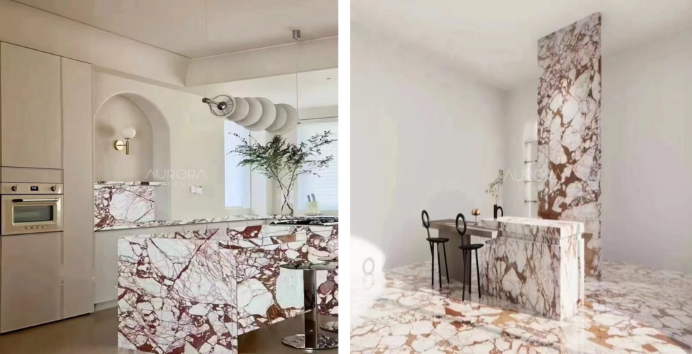 희소성과 미적 가치로 인해 가격대가 높고, 천연 대리석 특성상 산성 물질과 스크래치에 민감해 관리에 주의가 필요합니다. 칼라카타 비올라 레드는 일반적인 대리석보다 훨씬 개성 있고 드라마틱한 분위기를 연출할 수 있어, 고급 주거 공간이나 상업 공간에서 포인트 소재로 자주 활용됩니다.