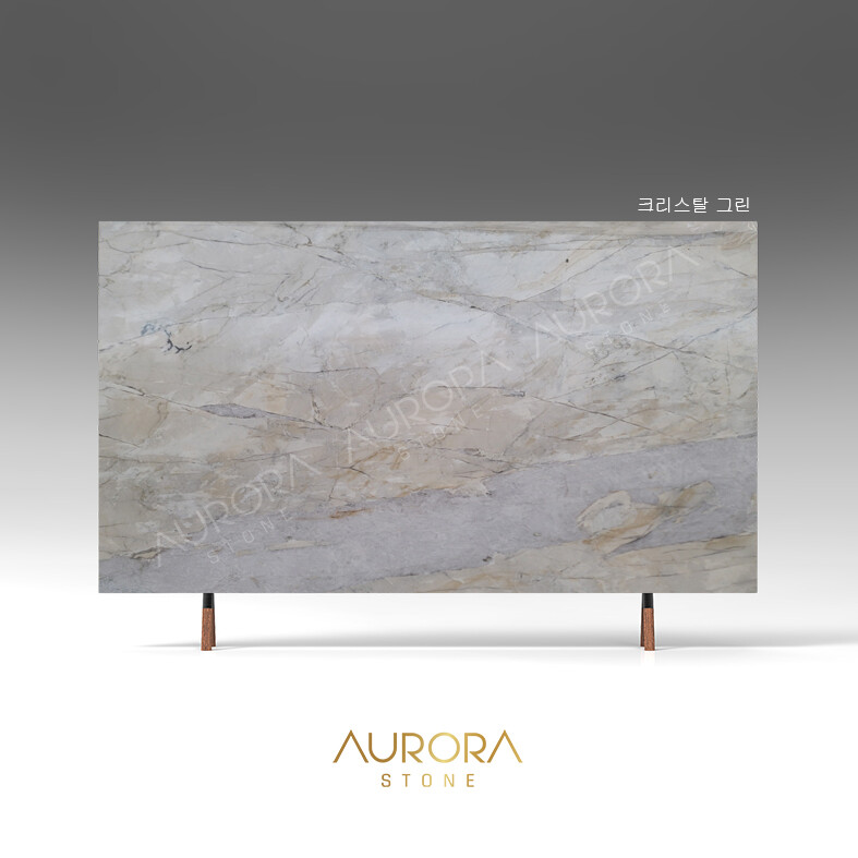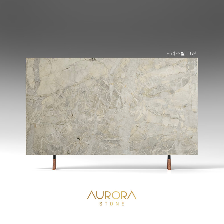 크리스탈 그린(Crystal Green) 은 은은한 그린 톤이 바탕을 이루고 있으며, 그 위로 불규칙하게 퍼져 있는 베인이 독특한 매력을 더해줍니다. 전체적으로는 차분하고 부드러운 인상을 주면서도, 가까이서 보면 세밀한 패턴과 컬러감이 유니크하게 어우러져 자연스러운 아름다움을 느낄 수 있습니다.