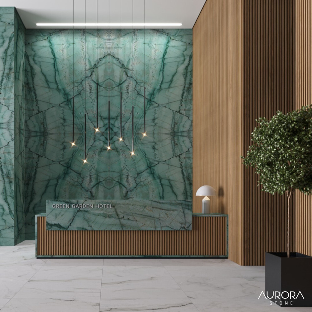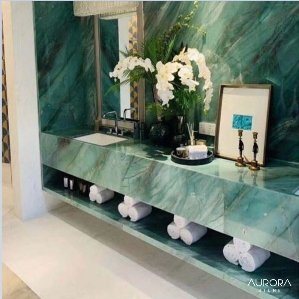 일반 대리석과 비교할 수 없는 경도와 내구성, 그린 패턴의 아주 유니크한 자재, 높은 광택도의 석재입니다.