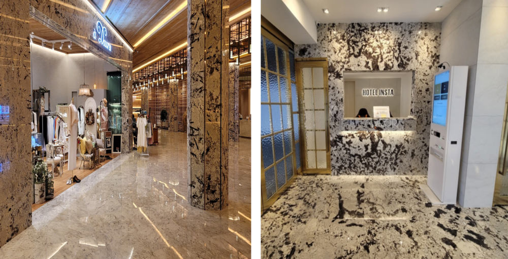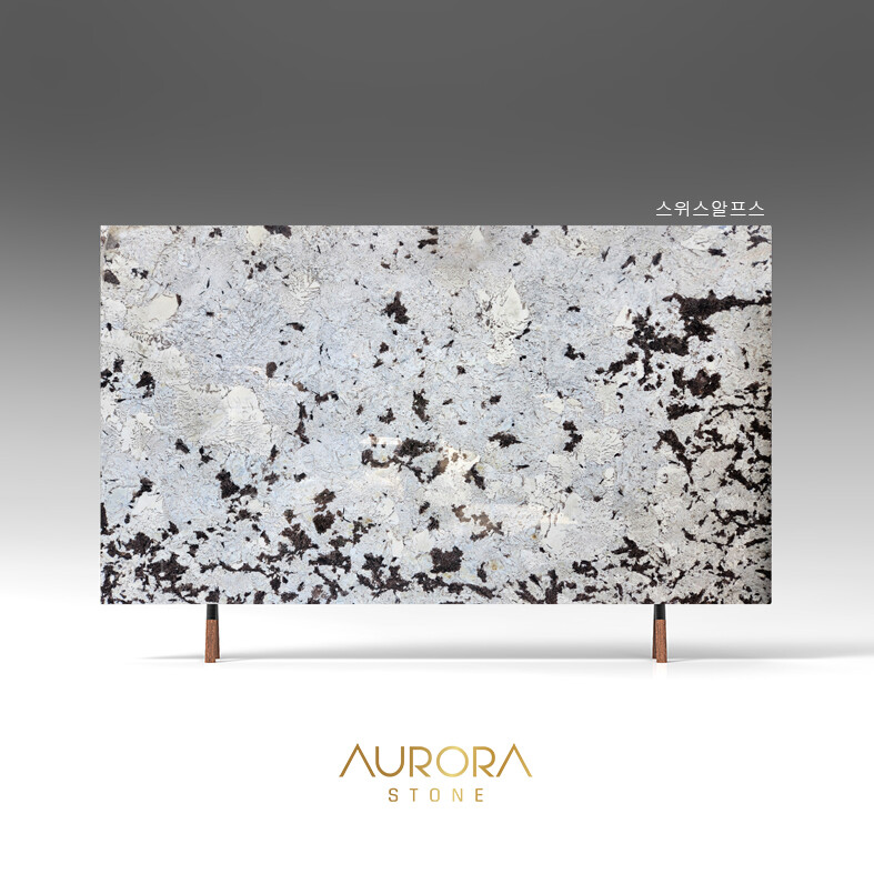 생동감이 느껴집니다. 스위스알프스 화강석으로 물성이 좋아 석영과 같은 광택을 낼 수 있어 아트월 인테리어에도 많이 사용됩니다. 단단하고 내구성이 강해 외부, 내부 벽과 바닥, 계단, 싱크대상판, 가구 등 기타설계 프로젝트에 유용합니다.