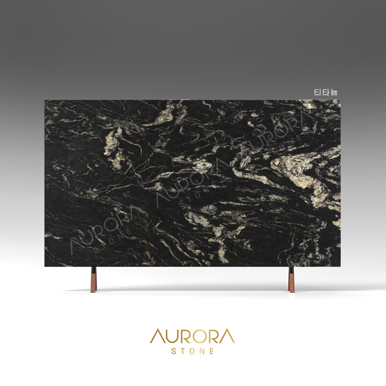 브라질산 화강석인 티타늄은 자연의 아름다움을 그대로 담아내어, 우아하게 흐르는 회색, 검은색, 금색, 크림색, 그리고 아이보리 색상이 어우러진 독특한 디자인을 자랑합니다.
