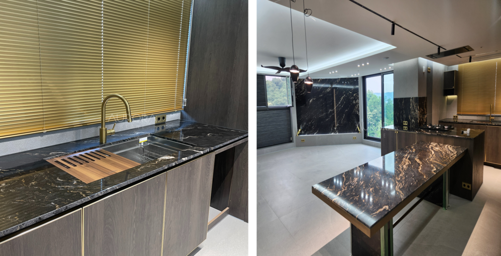 티타늄 화강석은 다양한 인테리어 스타일과 조화를 이루며, 그 자체로도 충분히 시선을 사로잡는 중심 포인트로서 공간을 돋보이게 합니다.