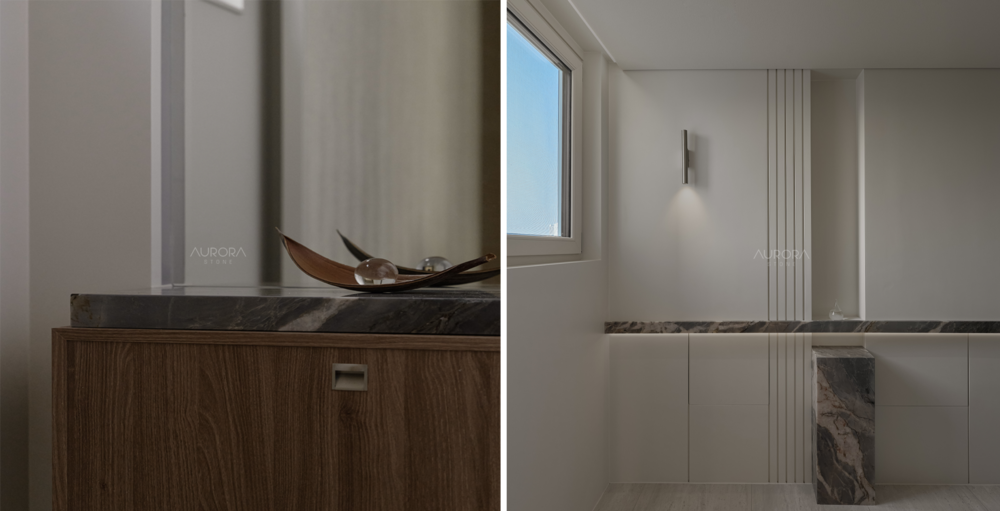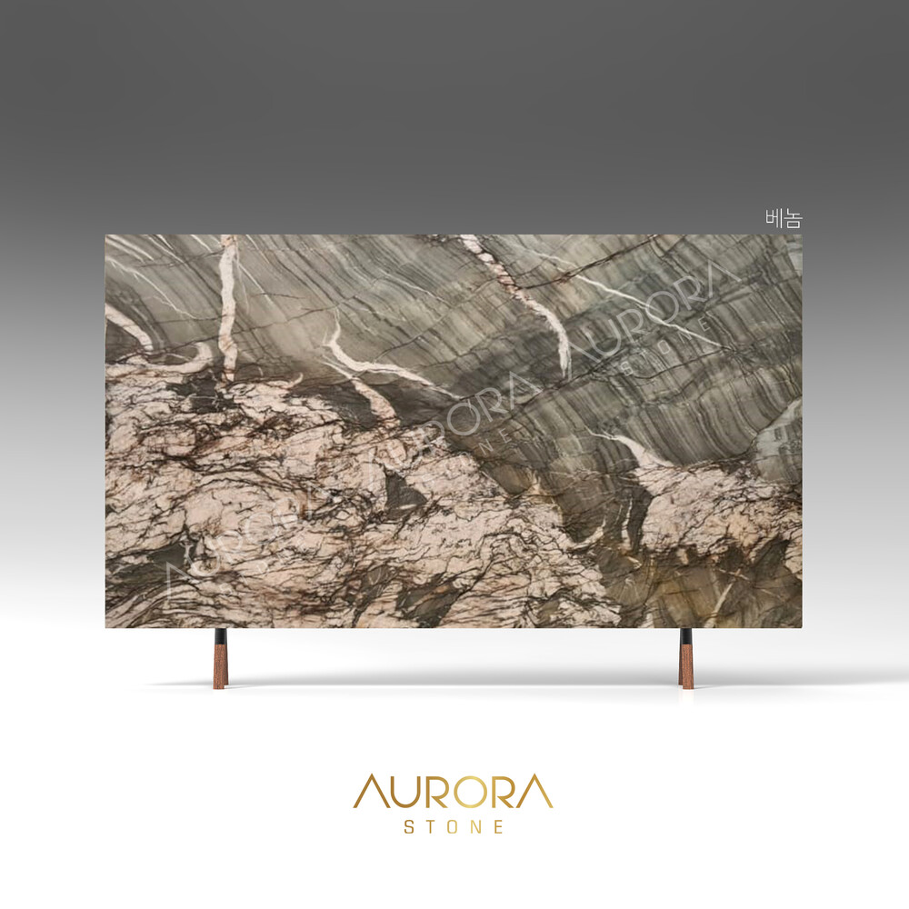 고급스러운 광택감과 유니크한 패턴 덕분에 주방 아일랜드 상판이나 아트월, 욕실 벽체, 호텔 로비와 같은 공간의 중심에 적용하기 좋습니다. 또한 베놈은 일반 대리석보다 단단한 퀄사이트 계열의 석재로 내구성이 뛰어나 실용성까지 갖추고 있습니다. 예술적인 패턴과 견고함을 동시에 원하는 분들에게 어울리는 특별한 천연석이라 할 수 있습니다.