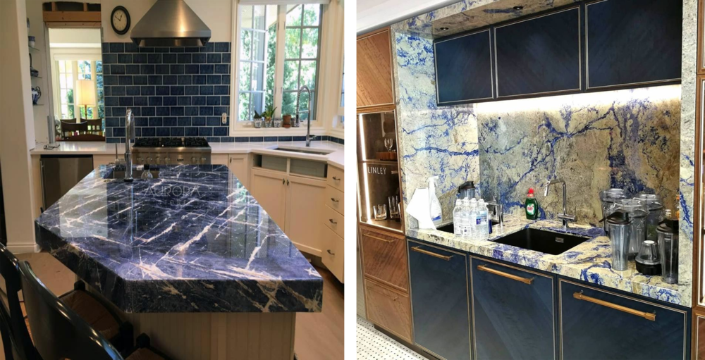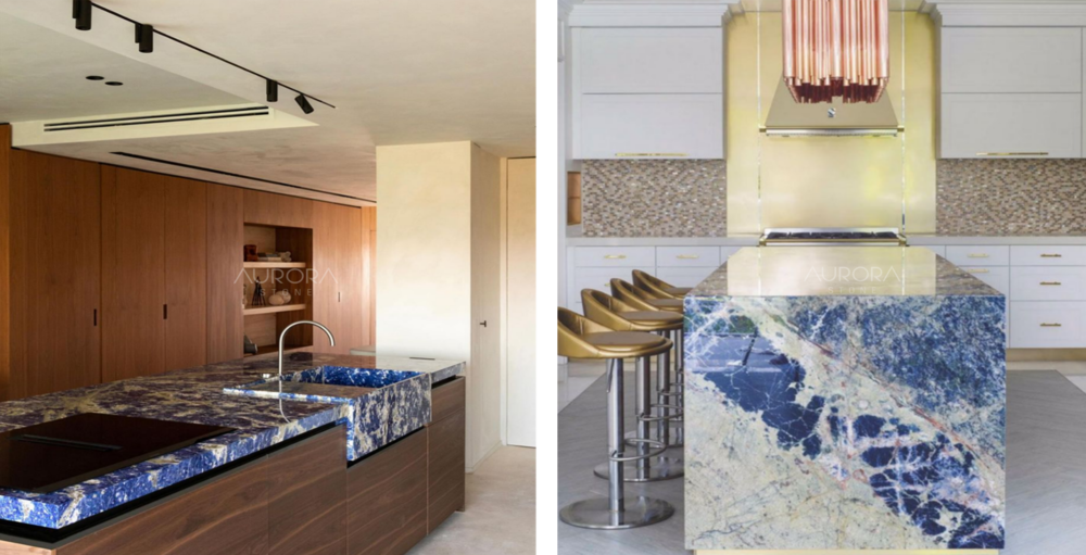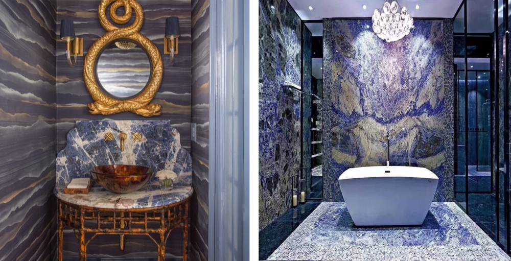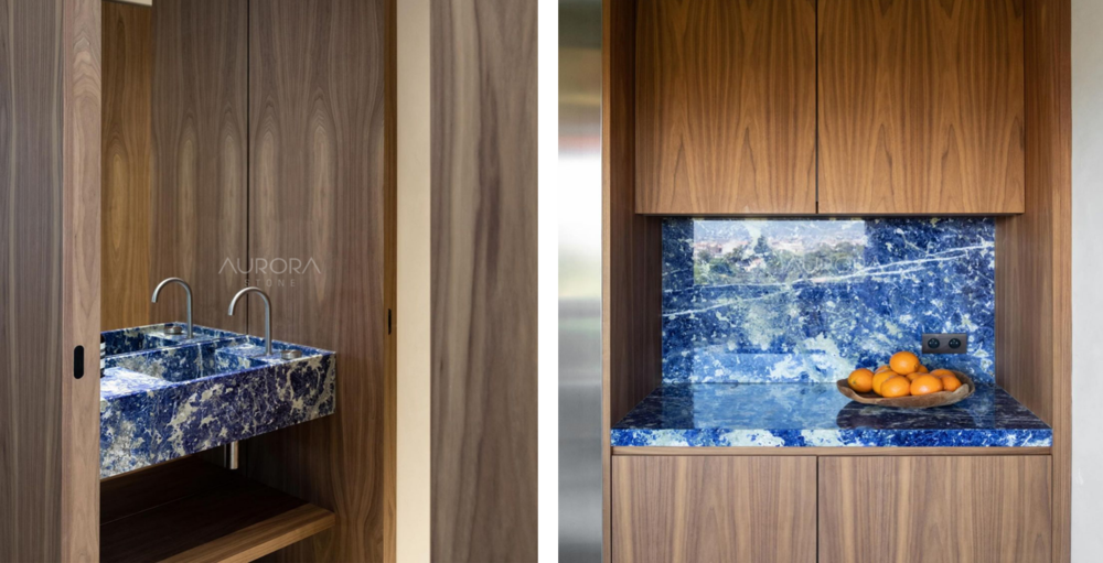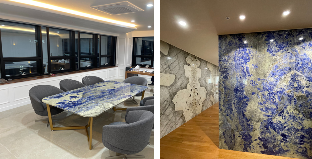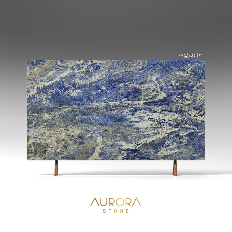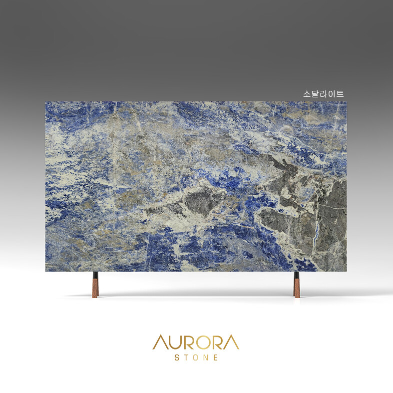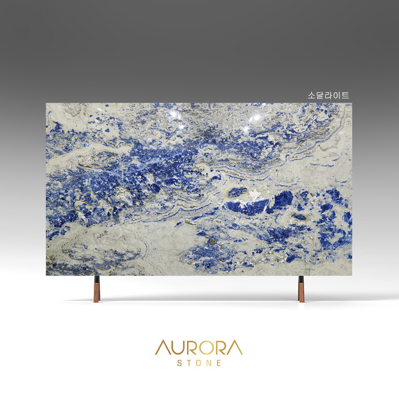 푸른색의 자연스러운 그라데이션 위에 화이트 크림색과 은은한 그레이 베인이 어우러져, 소달라이트의 아름다움을