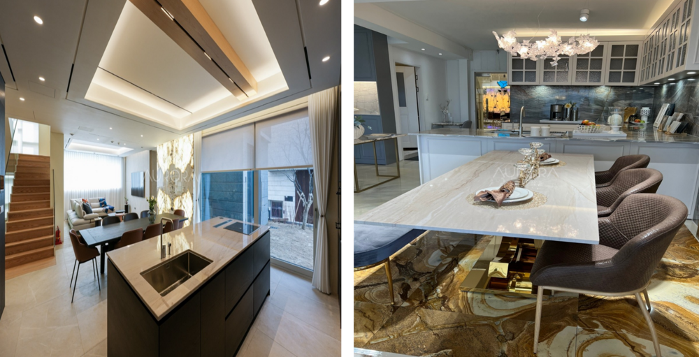 따라서 주방 상판, 욕실, 테이블, 벽, 바닥 등 다양한 공간에서 활용이 가능합니다.