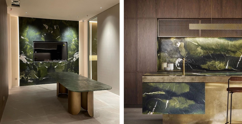 아보카투스 석재는 독특한 아름다움으로 주목받는 천연석입니다. 짙은 녹색과 은은한 밝은 녹색이 조화를 이루고, 여기에 독특한 무늬가 더해져 어떤 실내 공간에서도 돋보입니다. 부드러운 녹색의 깊이 있는 색상은 자연의 웅장함을 떠올리게 하며, 독특한 질감이 표면에 매력을 더합니다.