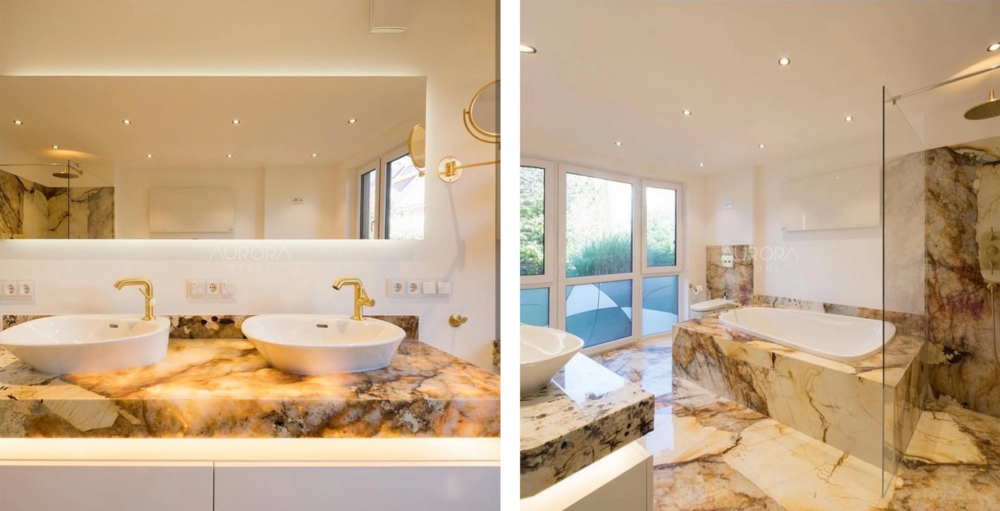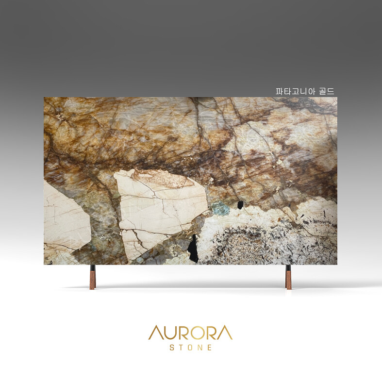 골드빛이 자연광이나 백라이트 조명과 만나며 공간을 한층 더 고급스럽고 예술적인 분위기로 연출해주며, 화려한 베인 패턴과 깊이감 있는 색조는 아트월이나 고급 인테리어 자재로 자주 선택됩니다. 오로라스톤이 제안하는 이 하이엔드 석종은, 그 자체로 공간의 가치를 높이는 프리미엄 마감재입니다. 자연의 광채와 섬세한 아름다움을 당신의 공간에서 직접 느껴보세요.
