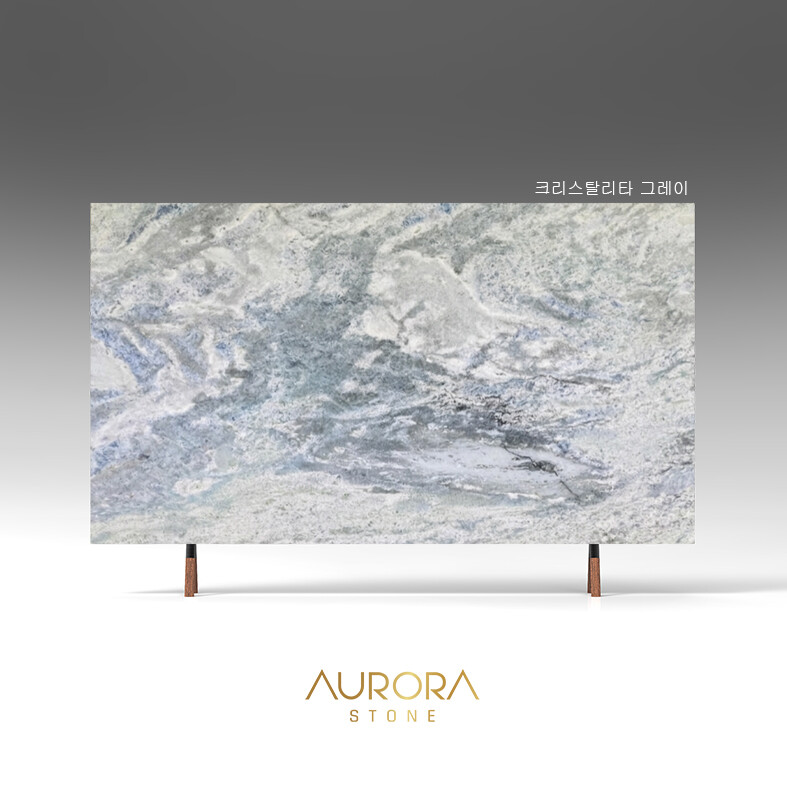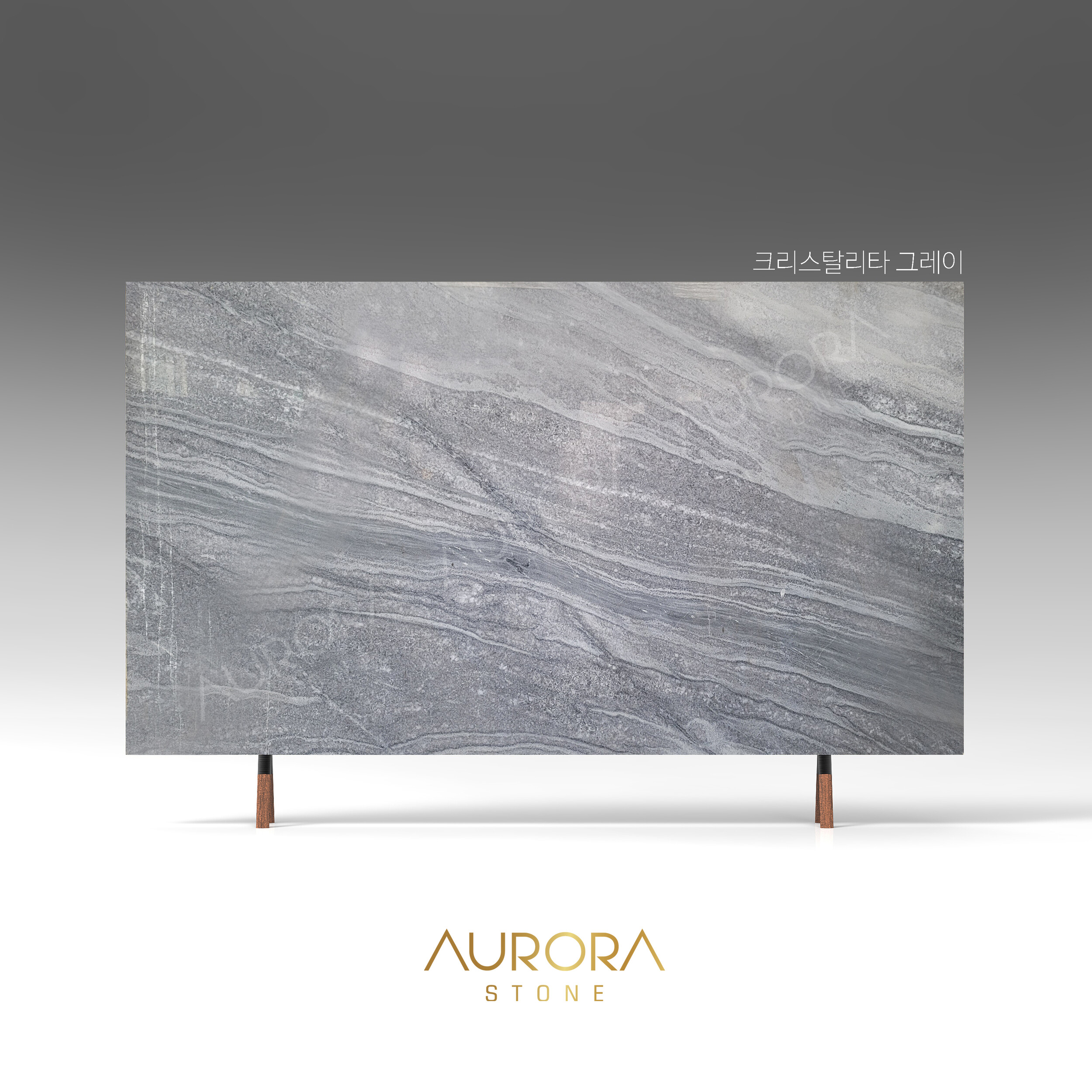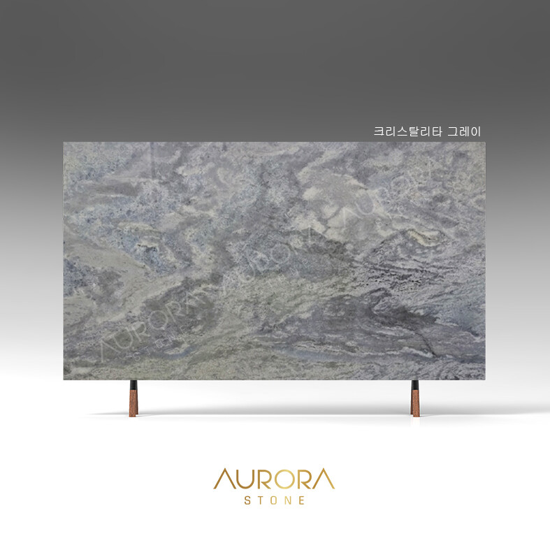 브라질의 고급대리석으로 강도 3의 단단함.다양한 색감과 내구성이 강한 자재로 깔끔하지만 화려한 인테리어를 연출할 수 있는 고급석재.은은한 그레이 계열의 크리스탈이 촘촘한 입자로 표현되어 있는 빛투과가 가능한 천연석임을 다시한번 강조해줍니다.베인의 흐름이 북매치로 적합하고 크리스탈의 빛투과가 최대의 장점으로 실내외 인테리어 뿐만 아니라 가구제작 등 어느 장소에도 잘 어울립니다.
