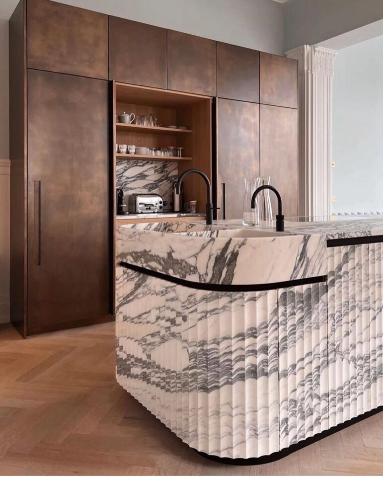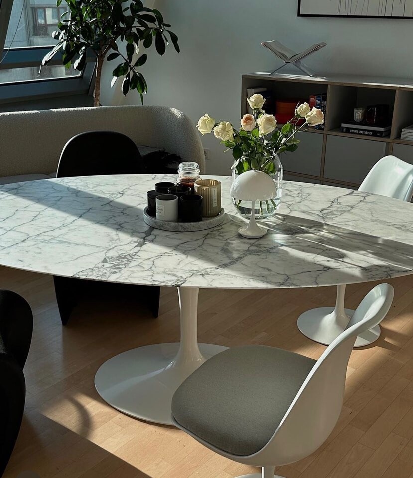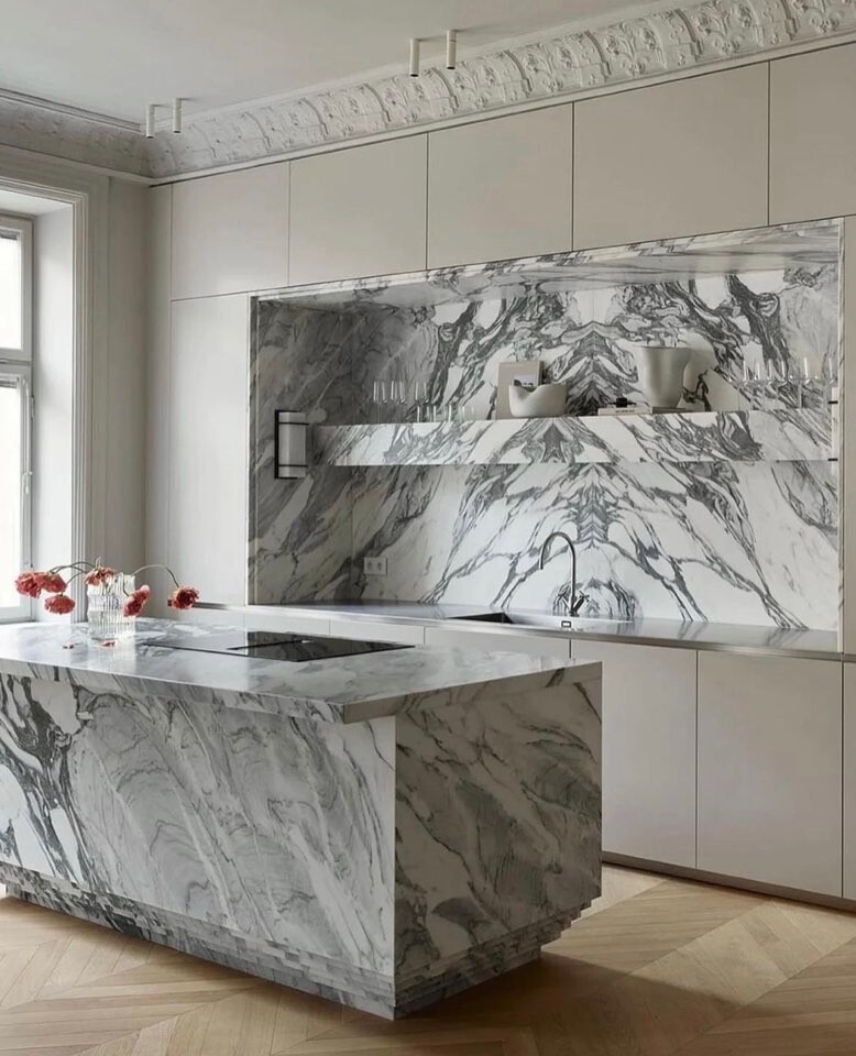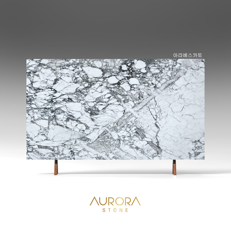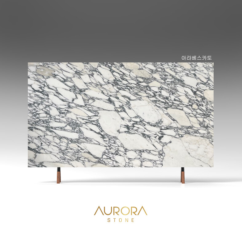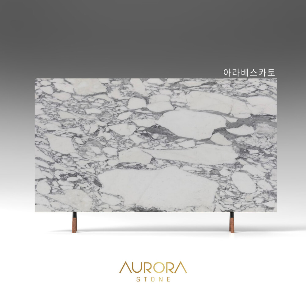 또한 아라베스카토는 우드 소재와의 조화가 뛰어나, 공간에 따뜻하면서도 고급스러운 분위기를 더해 줍니다. 차가운 대리석 특유의 세련됨에 자연스러운 나무 질감이 어우러지면서, 편안하면서도 세련된 무드를 연출할 수 있어 인테리어 자재로 많은 사랑을 받고 있습니다.