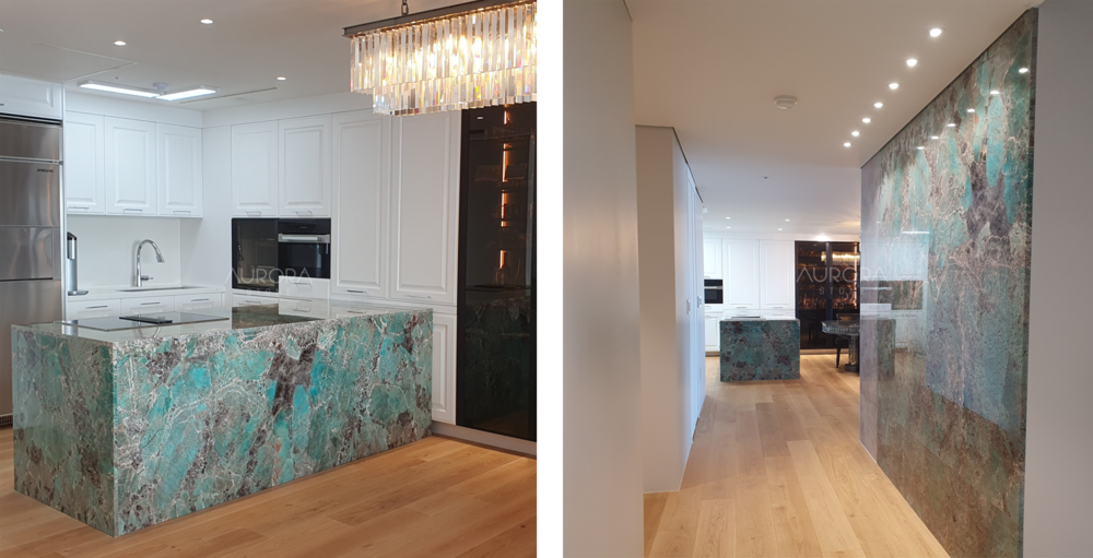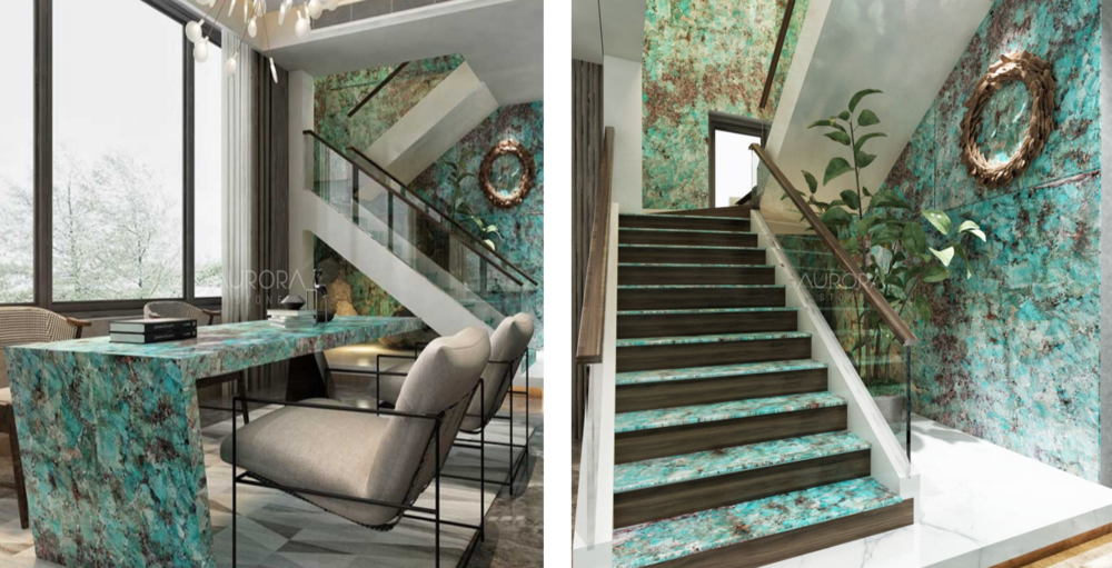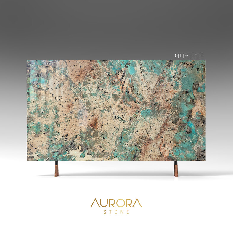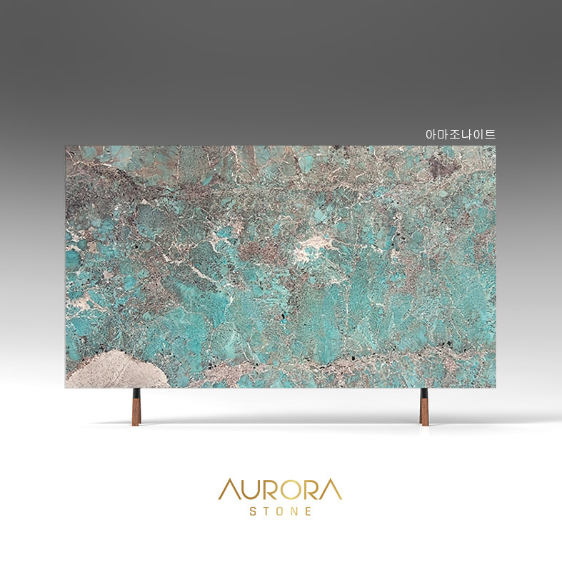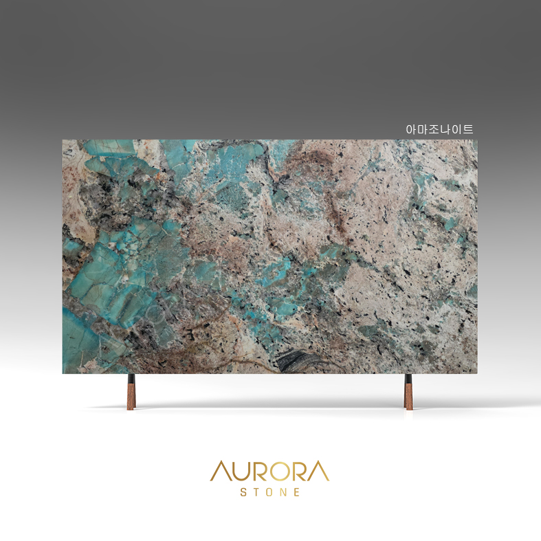 또한 아마조나이트는 건축 및 인테리어 자재를 넘어 보석과 장식품으로도 널리 활용될 만큼 독특한 패턴과 색감을 지닌 고급석입니다. 특히 그린 계열의 석재는 심리적으로도 마음을 진정시키고 스트레스를 완화시키는 효과가 있어, 공간을 더욱 편안하고 안락하게 만드는 데 탁월한 역할을 합니다. 실내의 아트월, 가구 마감재, 인테리어 포인트 등 다양한 용도로 활용되어 자연의 미감을 공간 속에 녹여냅니다.