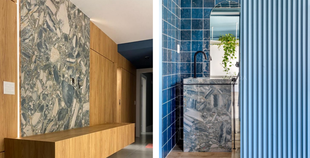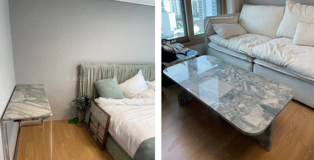 특히 호텔 로비나 고급 주거 공간에서 많이 사용되며, 디자이너들 사이에서도 주목받는 프리미엄 석재입니다.