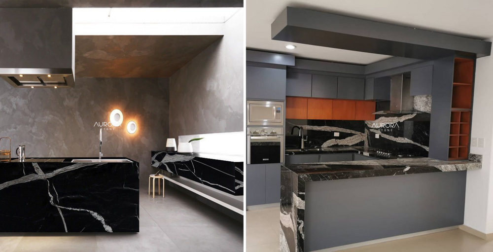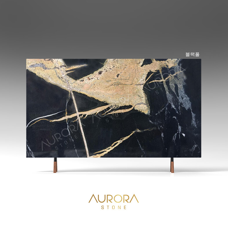 블랙컬러를 가진 화강석 중에서도 화이트, 골드빛 베인에 따라 분위기가 다양하게 연출되는 멋진 블랙폴입니다.